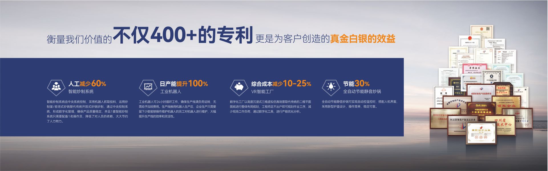 九游网(简称:成都九游网)是一家集研发、生产、销售、服务为一体,专注为中国传统食品行业提供自动化、智能化、数字化、智慧工厂整体解决方案的国家级高新技术企业。公司拥有标准化办公楼及现代化生产车间约42000m²,具有较强的综合研制、设计开发、生产能力,具备严格的质量管理体系和完善的售后服务体系。公司业务范围覆盖:复合调味品九游(中国)、中式酱卤肉制品九游(中国)、酱腌菜九游(中国)、智慧餐厨、央厨预制菜调理九游(中国),与海底捞、天味、九毛九、聚慧、杨国福、绝味、双汇、新希望、无穷、乌江、吉香居、仲景、李记乐宝、Tyson、益海嘉里、开小灶、老乡鸡等众多知名企业合作。截止目前,成都九游网已经助力超2000+企业顺利投产5000余条生产线,为客户创造年产值超1000亿元!